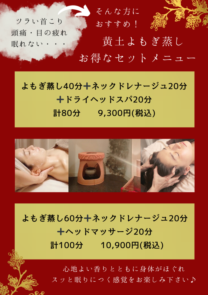よもぎ蒸しお得なセットメニュー♪